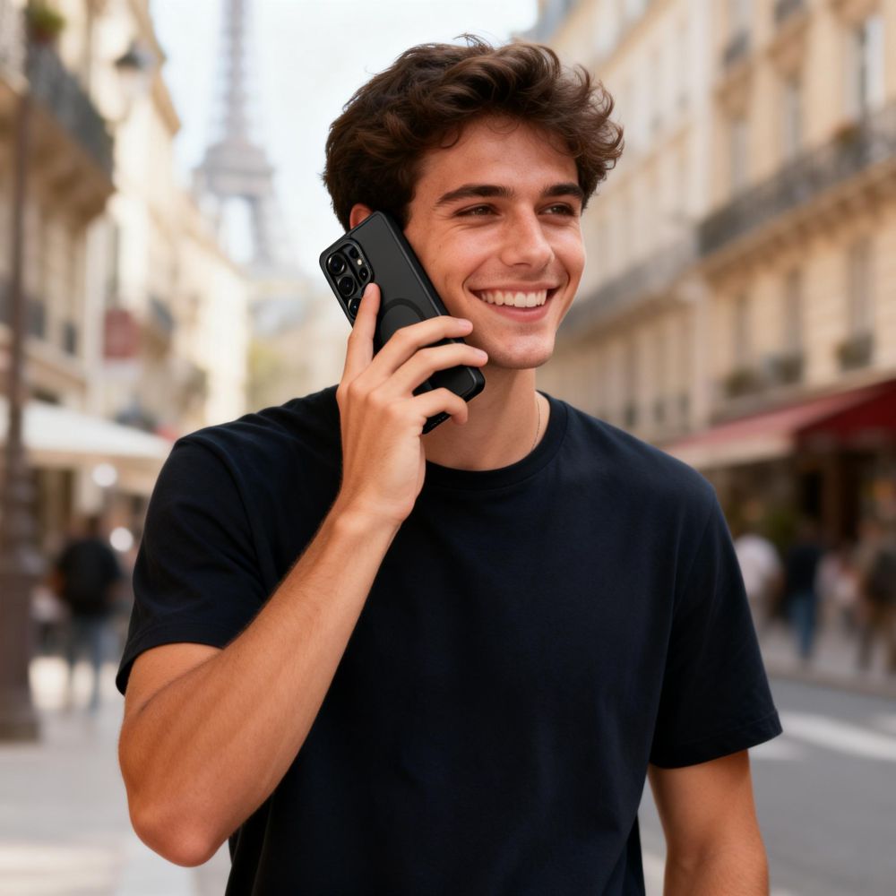 • Ovitek je opremljen z magnetnim obročem, združljivim z dodatki MagSafe