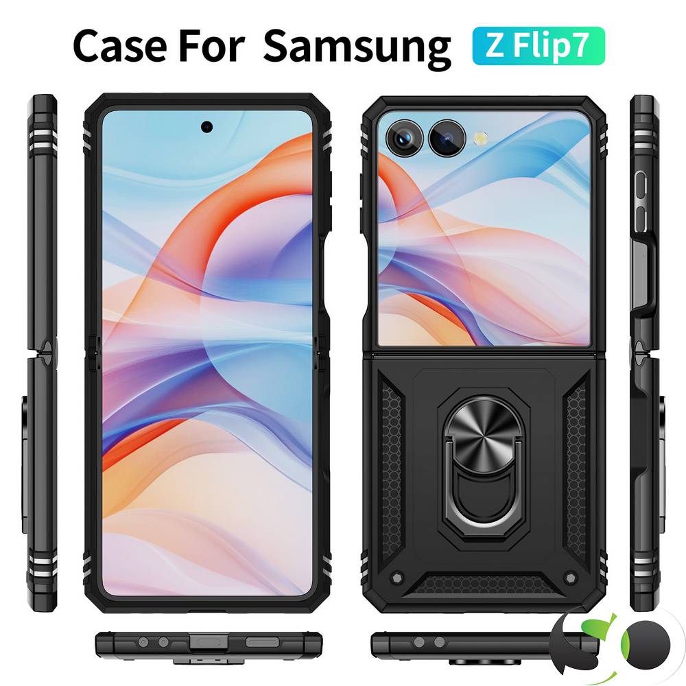 Anti-Shock Robusten ovitek s priročenim magnetnim podstavkom za Samsung Z Flip7 Črni